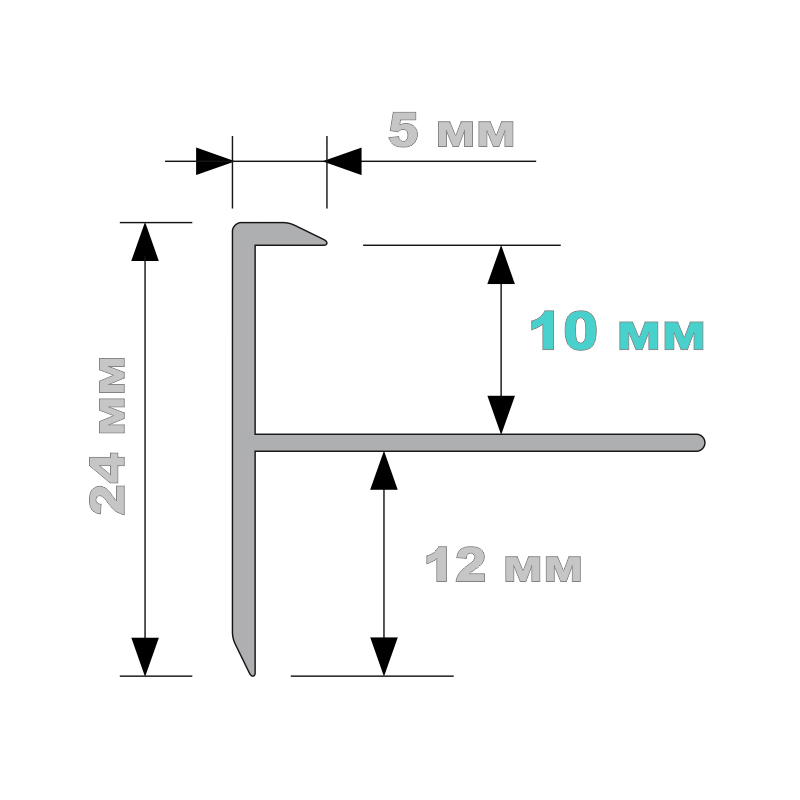 Алюминиевый профиль F - образной формы для плитки толщиной 10 мм.